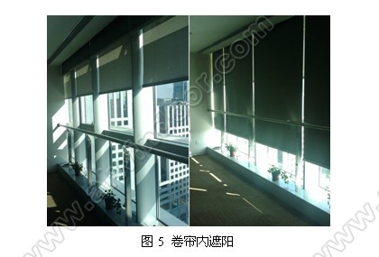 同時,在該項目東、西南側還采用了電動內遮陽卷簾,通過電動馬達控制可以自動調節卷簾開啟,并可控制遮陽簾自動升降以配合氣象條件,當所有遮陽簾一齊升降的時候,建筑物的外觀看起來非常協調。