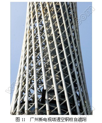 廣州線電視塔利用自身結構作為外遮陽措施,無疑為大型