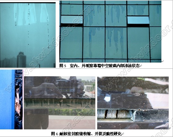 e)幕墻中空玻璃周邊為摻白油的密封膠(圖5、圖7),這些密封膠中的白油是流油污染和劣化內外片玻璃粘接的根源。