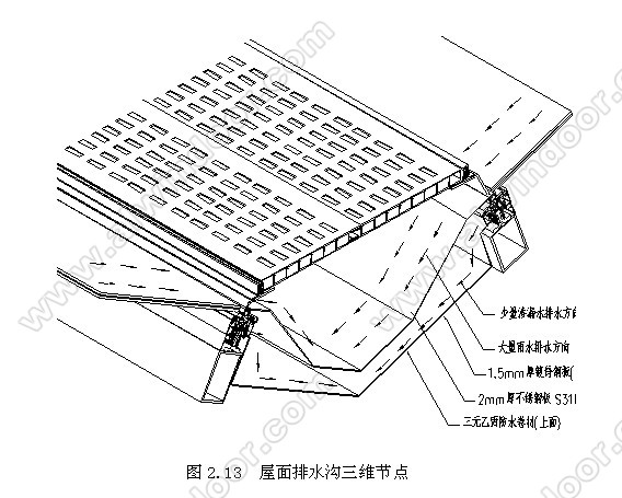 本系統(tǒng)設(shè)計了兩道天溝,外層是單層