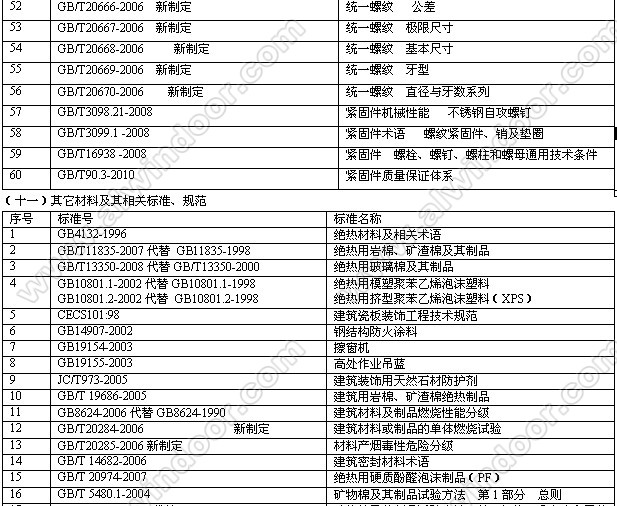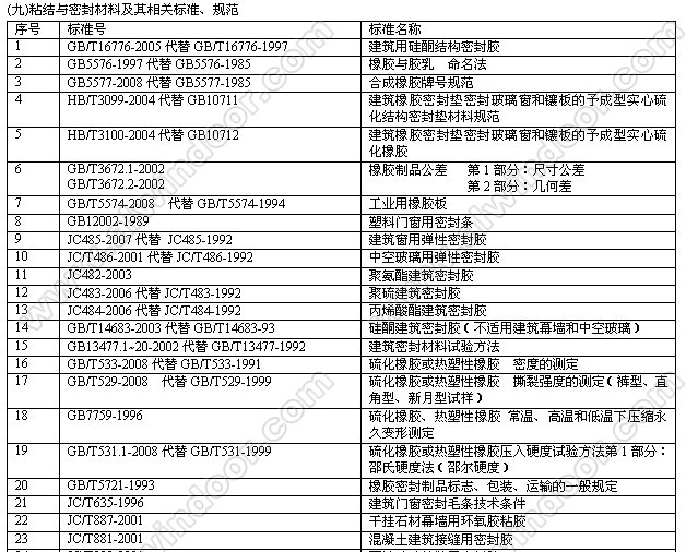 幕墻門窗行業國家標準、技術規范 (2011年5月31日止)