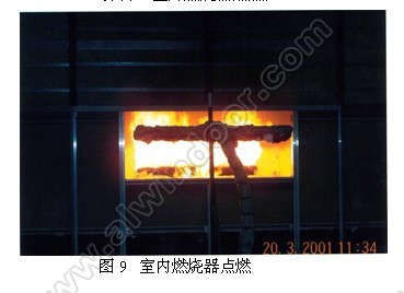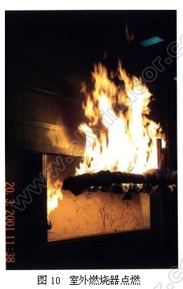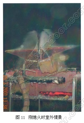 室內燃燒器點燃后2分鐘,從室外看,有煙霧開始從