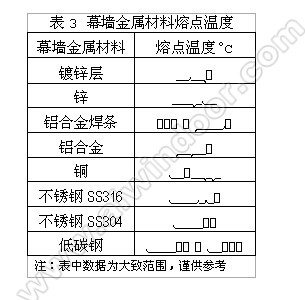 1) 玻璃:從防火試驗結果可以認識到,上層可視玻璃的完整性對防止火焰上竄很重要,而窗間墻非可視玻璃容易破碎和熔化,對整個防火體系的影響并不大,盡管形式上它跨越了二個防火分區。