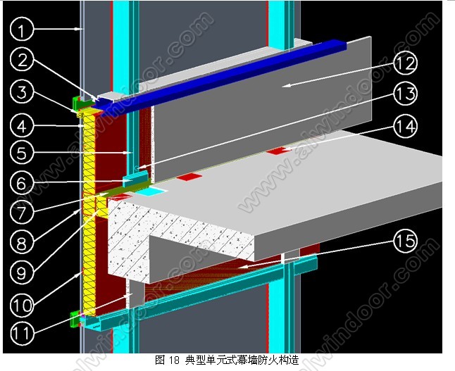 圖18 是典型的單元式幕墻防火構造,下面我們來詳細分析幕墻防火設計要點。