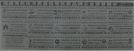 福建日報:福建海西經濟質量信譽優質品牌企業榮譽展示。2011年6月18日,應福建省建設廳邀請,福建省晉江市奮發橡塑制品有限公司至福州海峽國際會展中心參展,并經福建省住房和城鄉建設廳評審,被列為2011年度福建省建設科技成果推廣項目:福建省規模最大的建筑密封膠膠條門窗注塑件生產基地;福建省唯一通過國家硅酮結構密封膠生產認定企業;《建筑密封膠條》國標起草單位。