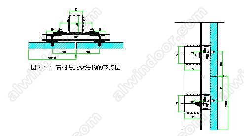 鋁合金掛件,使得面板石材與支承結構之間在安裝時可做到三維可調整,確保安裝后的石材表面平整、石材之間的縫隙寬度一致。(如圖2.1.1-2)