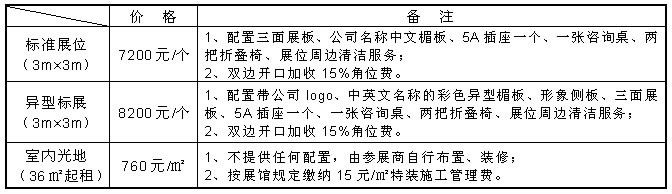 第一部分:展位價格表