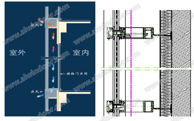 鋁板幕墻,其可以很好地將雨水及熱量阻擋在墻體之外。外層開放式