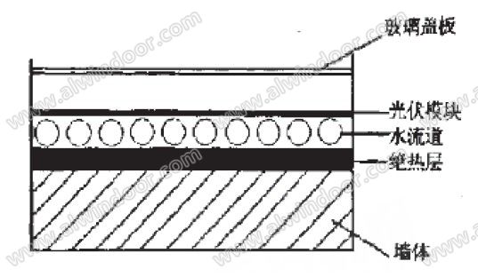 通水模式是在光伏模塊背面設(shè)囂吸熱表面和流體通道,構(gòu)成光伏光熱模塊PVT。通過流道中水帶走熱量,這樣既有效的降低了光伏電池的溫度,提高了光電效率,又有效的利用了余熱,獲得了熱水,這種在外表面設(shè)置了光伏光熱模塊、以水為流體的墻體就是光伏熱水一體墻。光伏熱水一體墻系統(tǒng)由光伏光熱模塊、直流循環(huán)水泵、水箱、連接管道及支撐框架組成。鋪設(shè)到普通