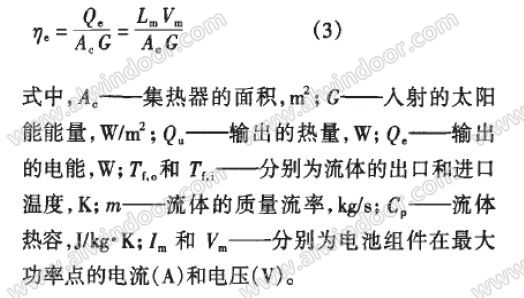 BIPVT集熱器電效率是指單位集熱器面積輸出的電能與入射太陽能的能量之比,定義為: