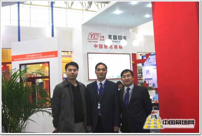 中國幕墻網(wǎng)記者 雷鳴(左)、濰坊永昌鋁業(yè)有限公司副總經(jīng)理 肖元升(中)、中國建筑金屬結(jié)構(gòu)協(xié)會鋁門窗幕墻分會專家 劉萬奇(右)