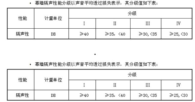 隔聲性能(以上由國家標準GB/T15225規定)/