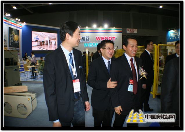 中國建筑金屬結協會會長姚兵展臺前與侯秀峰董事長及周倩總經理合影