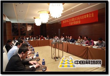 圖為各重點壓延光伏玻璃生產(chǎn)企業(yè)對行業(yè)形勢進行分析與交流現(xiàn)場