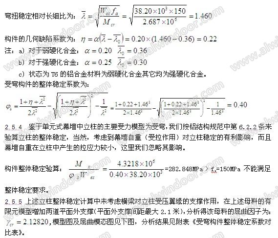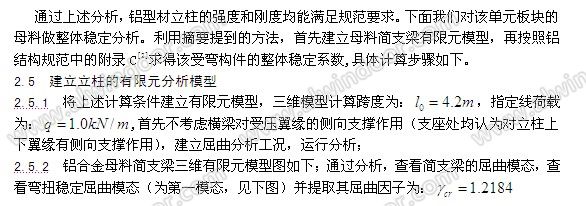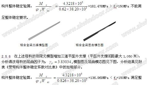 5. 利用鋁結(jié)構(gòu)規(guī)范相第6.2.2條[2],來判斷簡支梁的整體穩(wěn)定是否滿足規(guī)范要求。