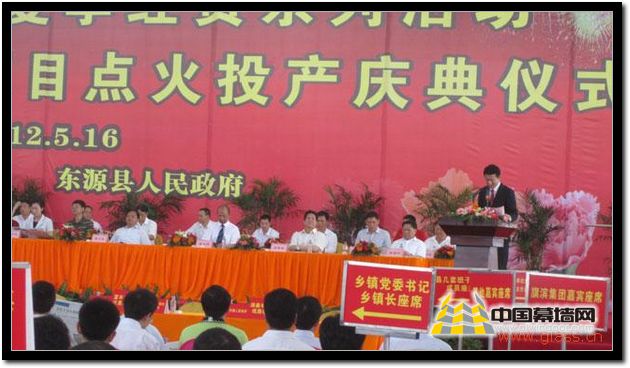當日,中共河源市委副書記、市長彭建文、中共東源縣委書記葉少軍、各鄉鎮黨委、東源縣26個項目代表、旗濱集團相關領導及員工200余人參加了點火投產儀式。此次點火儀式由中共東源縣縣長何廣延主持、市委彭建文副書記及縣委葉少軍書記分別致辭,表示對旗濱集團光伏玻璃產業的支持。