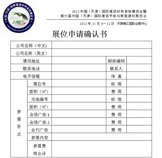 1.認真填寫展位申請確認書的各項內容,務必保證內容詳細有效,加蓋公章后郵寄或傳真直組委會,展位申請被接受后,組委會通過傳真或郵寄的方式確認您的申請。(企業名稱填寫準確,將用于后期展位楣板的制作)