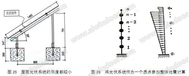 有支架的光伏結(jié)構(gòu)系統(tǒng)可按放置于地面的單質(zhì)點(diǎn)結(jié)構(gòu)計(jì)算其地震作用,再考慮突出屋面小結(jié)構(gòu)的地震力放大作用,乘以放大系數(shù)3.0。必要時可連同主體結(jié)構(gòu)一起進(jìn)行地震反應(yīng)分析(圖26),得出的小附屬結(jié)構(gòu)地震作用應(yīng)放大1.5~2倍。
