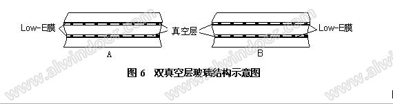 應該說明,圖6中A和B兩種結構中Low-E膜的位置不同,不影響K值,只影響實際使用時三片玻璃的溫度分布。