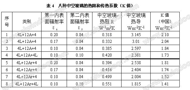例如,用表2中序號3的真空玻璃與表4中序號3 的中空玻璃組合成4L+0.15V+4+12A+4L的“真空+中空”玻璃時,R組合=(1.06+0.385)W-1m2K=1.45W-1m2K