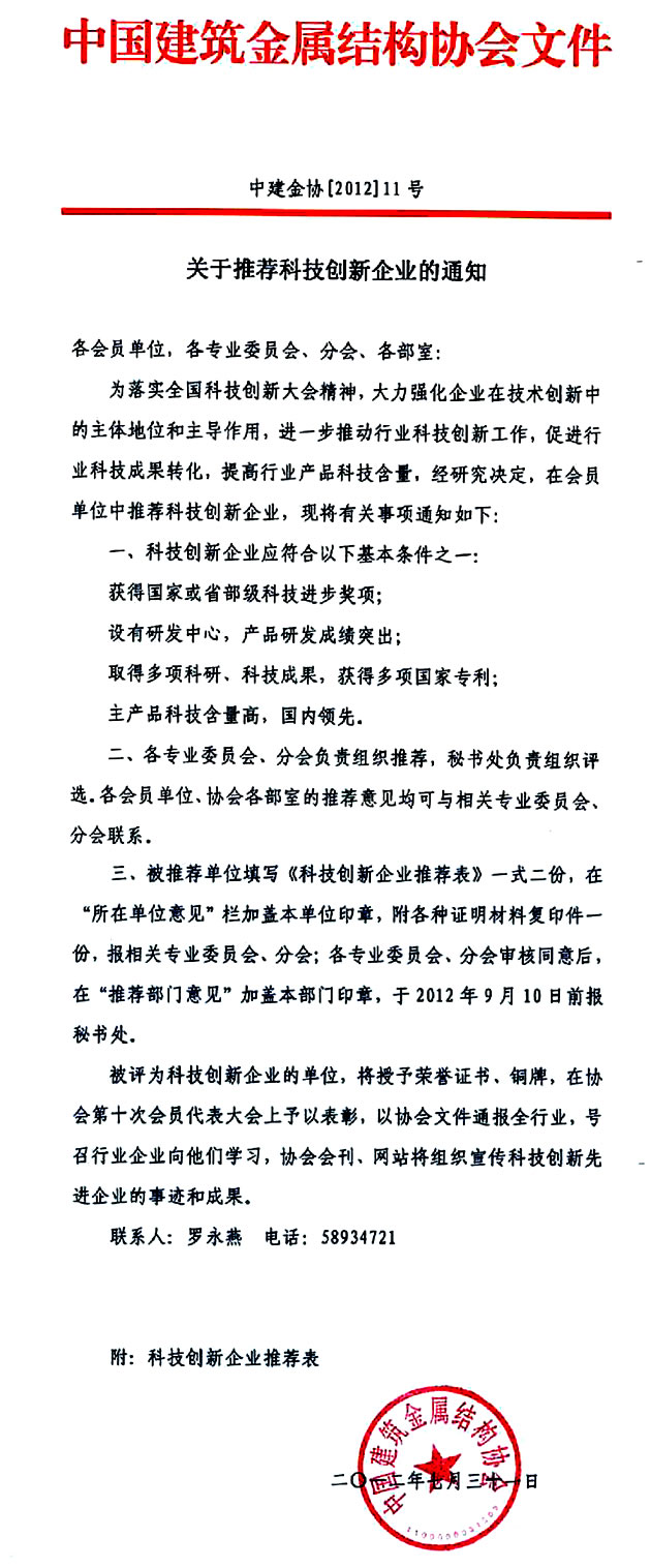 關(guān)于推薦科技創(chuàng)新企業(yè)的通知