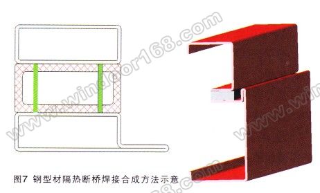 焊接的方法。圖7左是歐洲某企業生產的有隔熱斷橋結構的鋼框