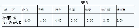 如表3所示,按節能標準的要求,北京、濟南等地區單層窗已不適合要求,應采用保溫性能更好的窗戶。在嚴寒地區,例如:吉林、