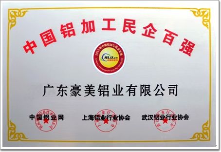 鋁加工民企百?gòu)?qiáng)評(píng)選”圓滿結(jié)束,百?gòu)?qiáng)榜單火熱出爐,廣東豪美鋁業(yè)股份有限公司在歷經(jīng)申報(bào)階段、初評(píng)、初選公布、終評(píng)、公布評(píng)選結(jié)果共123天之后,成功榮膺2012中國(guó)鋁加工民企百?gòu)?qiáng)稱號(hào)。