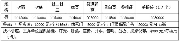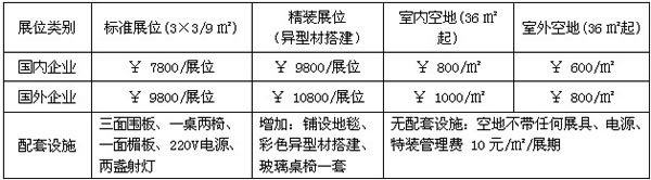 【參展費用】注:雙向開口展位加收1000元人民幣的角位費