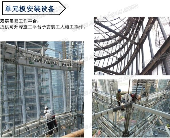 其中單元式玻璃幕墻是近15年來世界最流行的幕墻施工技術,德國等外發達國家最先使用,我國最先使用的是在上海浦東新區的部分高層建筑,單元式幕墻把鋁型材、玻璃、配件全部在工廠里預先組裝好,成為幕墻單元板塊,板塊運到工地,在建筑工地將幕墻單元板塊一片片安裝到大樓。