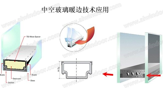 (3)中空玻璃,中空玻璃由于在兩片玻璃之間形成了被限制了流動的空氣層,從而減少了玻璃的對流和傳導傳熱,因此它具有了較好的隔熱能力。中空玻璃使用兩種膠密封施工工藝,丁基熱溶膠和聚硫膠或硅酮密封膠,使用裝分子篩的金屬間隔條,或熱熔密封間隔條,能有效的提高隔熱性。注入不同惰性氣體后,隔熱性能將有不同程度的提高。