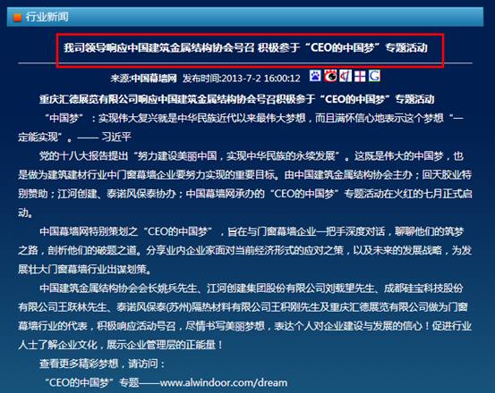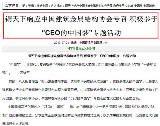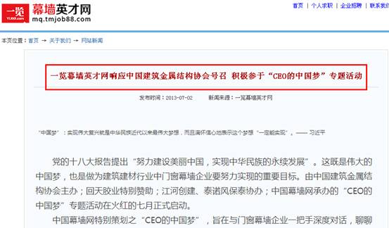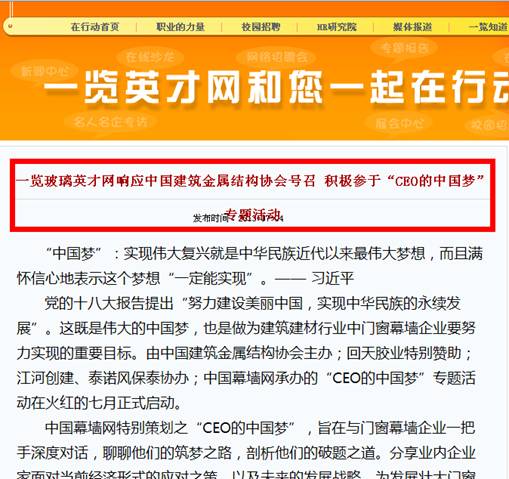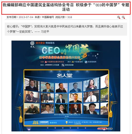 CEO的“中國(guó)夢(mèng)“活動(dòng) 媒體聯(lián)盟
