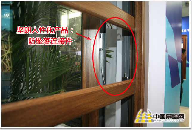 在展會現場,堅朗的工作人員為我們介紹了公司人性化的產品,防止窗戶脫落的連接件。圖中紅色部分標明的既是堅朗的產品。高層建筑安全隱患一直是大家關注的焦點,玻璃脫落、窗戶脫落等隱患隨時都在威脅著人們的生命安全。為了讓人們的生命財產安全得到保障,堅朗研發生產了防止窗戶脫落的連接件。當窗戶的合頁或滑撐出現松動,窗戶有墜落的跡象時,堅朗的連接件能夠很好的拉住窗體不下落,從而降低安全隱患。