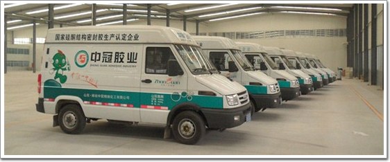 噴有中冠膠業(yè)VI標(biāo)識的車輛靜等著主人的領(lǐng)取