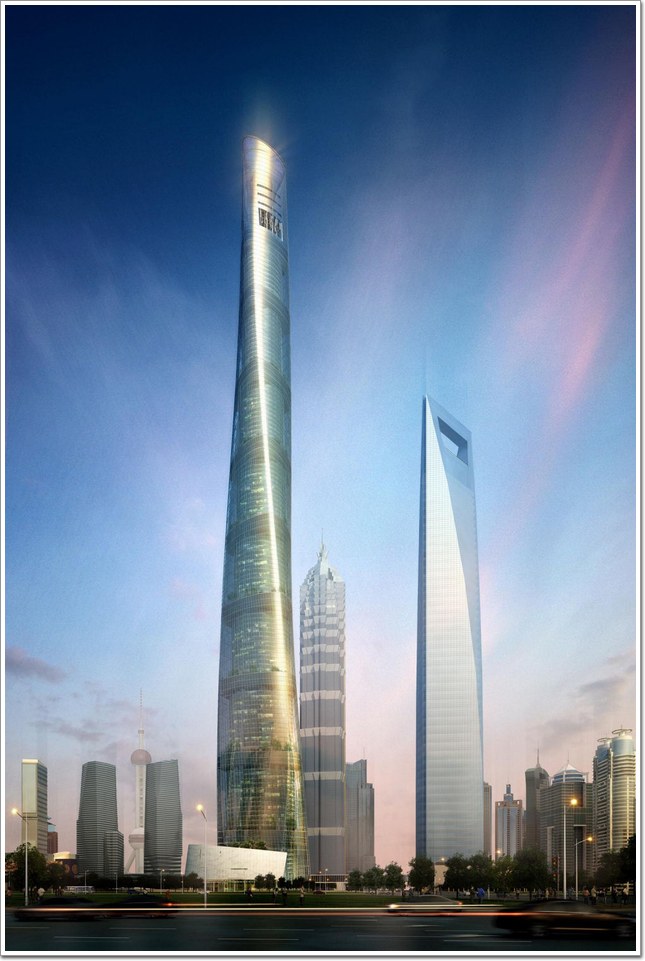 上海中心大廈,位于浦東的陸家嘴功能區(qū),占地3萬多平方米,所處地塊東至東泰路,南依銀城南路,北靠花園石橋路,西臨銀城中路,為上海陸家嘴摩天大樓建設(shè)計劃最后的壓軸工程。其建筑設(shè)計方案由美國Gensler建筑設(shè)計事務(wù)所完成,主體建筑結(jié)構(gòu)高度為580米,總高度632米,是目前中國國內(nèi)建設(shè)中的第二高樓。上海中心大廈總投入超過148億元,按照工程計劃,大廈將于2015年全面建成并啟用,成為世界第一綠色摩天高樓并與420.5米的金茂大廈、492米的環(huán)球金融中心共同構(gòu)成浦東陸家嘴金融城的金三角,勾勒出上海的摩天大樓天際線。