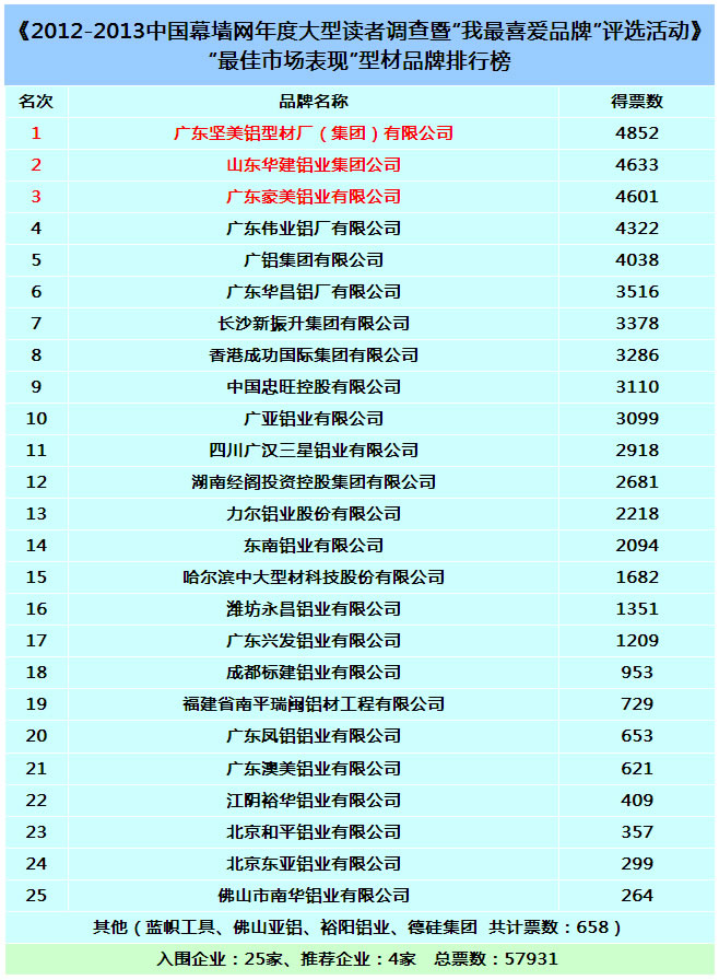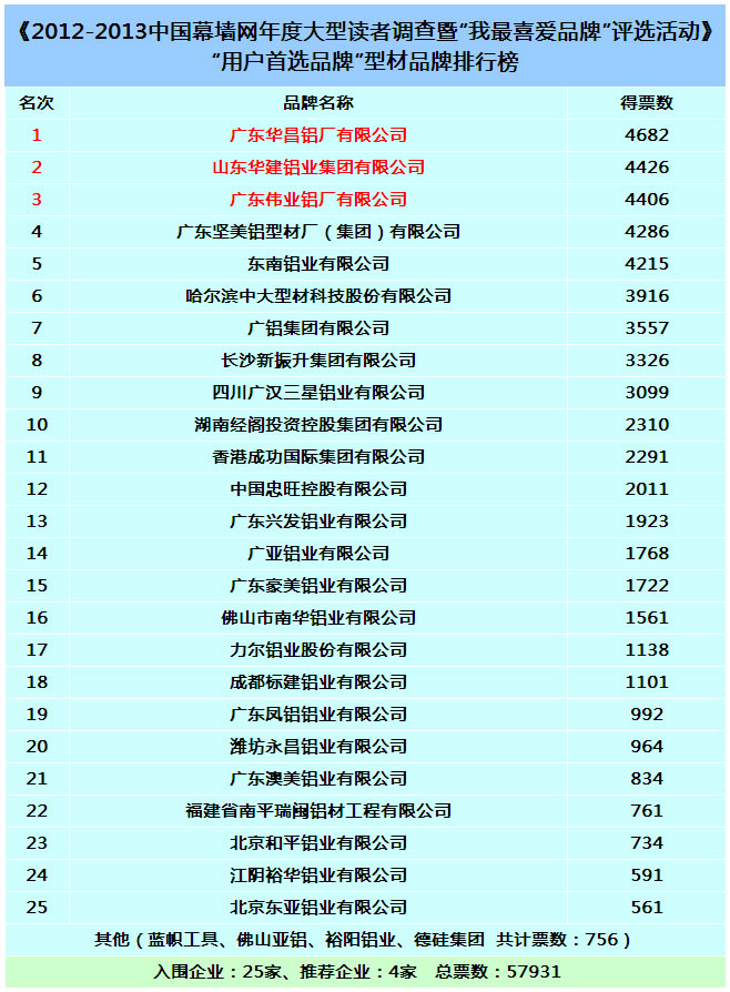 2012-2013行業讀者票選——型材行業品牌排行榜