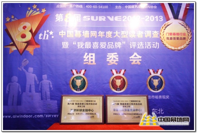 第八屆中國幕墻網年度大型讀者有獎調查,于2012年11月正式啟動,在2013年3月10日結束,通過對活動期采集到的57,931張,有效選票進行排名分析和整理,分別從幕墻工程認同度;產品的品牌影響力和用戶認同度;產品的市場占有率方面,評選出“我最喜愛幕墻工程”、“用戶首選品牌”和“最佳市場表現”。
