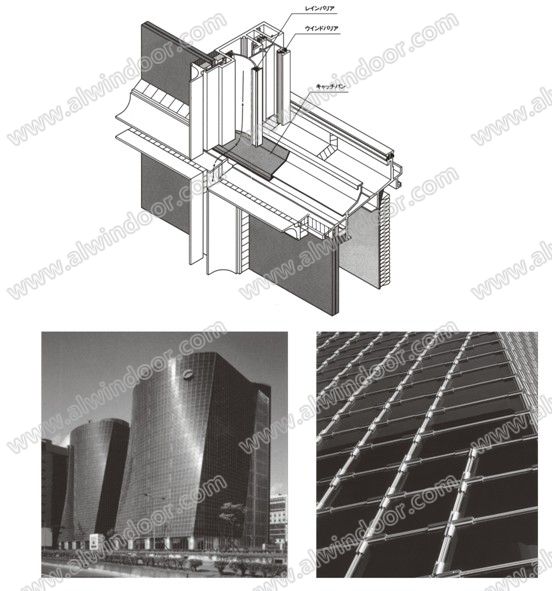 框交點采用十字型,用螺絲固定。在這個部位設有內藏發光二級管照明,夜間從遠處望大廈,大廈星光閃閃。