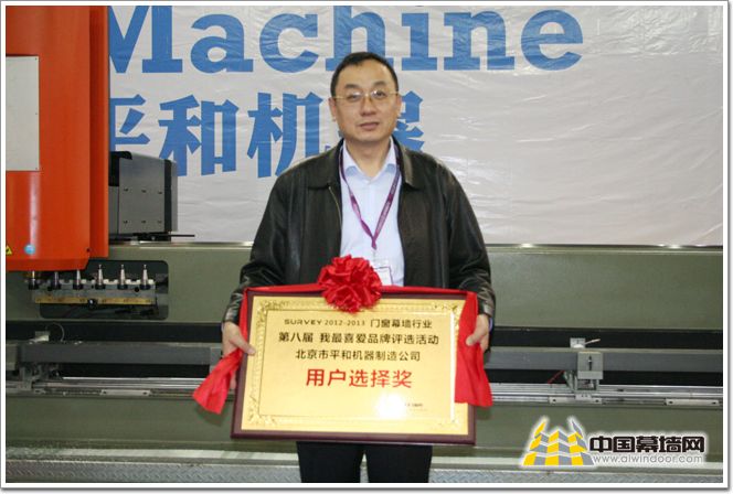 在展會現場同期發布的第八屆中國幕墻網年度大型行業調查活動暨“我最喜愛品牌”評選活動結果中,北京市平和機器制造公司榮獲設備類用戶首選品牌獎(總票數4706票)和市場表現獎(總票數5013)。 【點擊查看讀者調查活動】