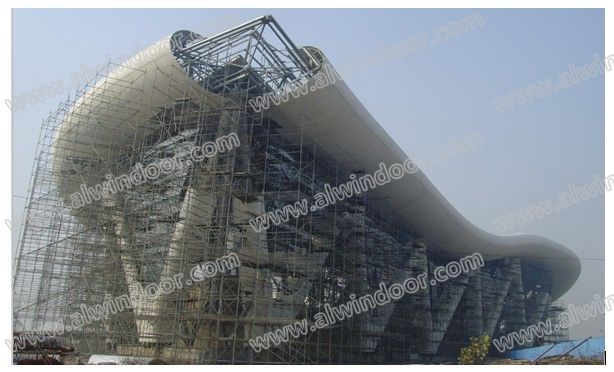 2、很多的板材一旦做大,整個生產工藝、運輸以及施工工藝就變得相當繁雜,工作量劇增,費用高,為了增加板子的剛性,在技術上也要采用系列的措施。目前,雖然玻璃也可以定制大板,但是大部分的板材很難超過40M2,不完全記錄目前能生產的最大的雙鋼化夾膠玻璃是13m×3m,但是生產、運輸以及施工非常麻煩,而且自應力大,易自爆,其他幕墻板材都很難做到這么大的板材。GRC幕墻板材卻可以做的非常大,主要原因在于:1)、GRC是通過模具來制作,只要模具能夠做到,理論上講GRC板子可以做成任意大的;
