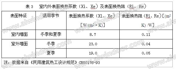 在結構本身的傳熱過程中,實體材料層以導熱為主,空氣層一般以輻射傳熱為主。由于非透明幕墻構造中空氣層的必然存在,空氣層的傳熱不容忽視。根據幕墻的封閉和開放式兩種構造,空氣層也大致分為封閉式空氣間層和開放式空氣間層。后面將重點說明。通風良好的空氣間層,其熱阻可不考慮。這種空氣間層的間層溫度可取進氣溫度,表面換熱系數可取12.0 W/(m2K)。空氣間層的傳熱系數可由表4選取。