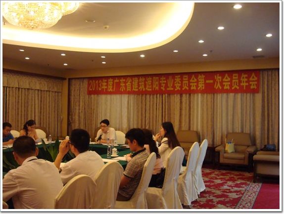 2013年5月10日下午,廣東省建筑節(jié)能協(xié)會建筑遮陽專業(yè)委員會年會順利在廣州召開。廣東省建筑節(jié)能協(xié)會劉成軍常務(wù)副秘書長、遮陽專委會常務(wù)副主任范遠(yuǎn)斌、廣州綠色建筑展組委會代表及相關(guān)企業(yè)領(lǐng)導(dǎo)參加了年會。