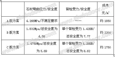 以上各階段的三個設計方案對比分析列表如下:(根據試驗結果,面板彎曲強度標準值按6.0MPa、背栓拉拔力按7880N考慮)