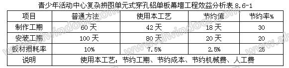 8.6 單元板制作、安裝使用本工藝與普通方法效益比較如表8.6-1所示。