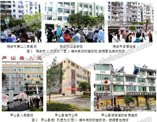 2013年4月20日8時(shí)02分,四川蘆山發(fā)生7.0級強(qiáng)烈地震,震中烈度達(dá)到9度。震區(qū)內(nèi)建筑物受到不同程度的損害,相應(yīng)地玻璃窗和建筑幕墻也受到了考驗(yàn)。