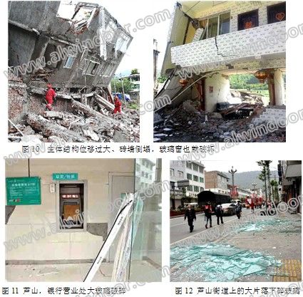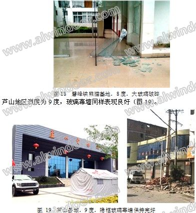 從這次蘆山大地震中玻璃窗的表現來看,固定窗是有可能耐受到層間位移角1/500而不會產生破損;即使個別工程可能有玻璃破裂,破損的數量也會是極少的。這個規律與2008年汶川地震和2010年玉樹地震中玻璃窗的震害規律相同。