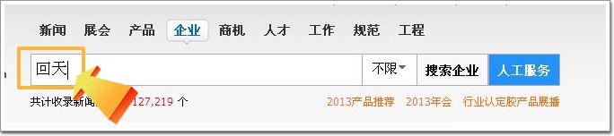 ·然后輸入我們要找的企業的名稱,輸入“回天”(我們的搜索欄是可以模糊搜索的哦)。