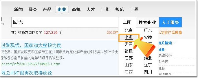 ·再選擇查找地區(這是為了搜索更精確,不是必選項目),在這里選擇“上海”。