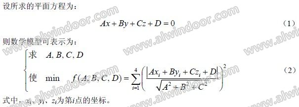 因為是空間曲面,有限元模型中連接玻璃的四個角點可能不在同一平面上,若能找到一個平面與四個角點的距離和最小,則該平面可認為是一個最優平面,將頂點再投影到平面上形成的新頂點即為所求的平板玻璃角點。