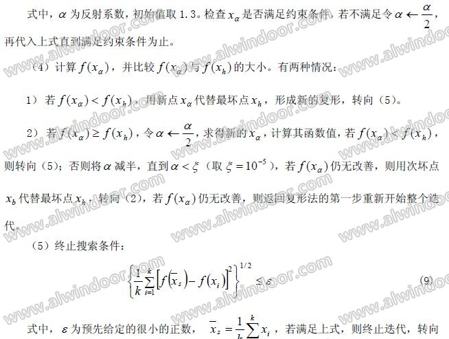 從以上數學模型可看出,此問題為無約束的非線性規劃問題,因設計變量數為 4 個,可采用數學規劃中的復形法求解。復形法的計算步驟可分為兩步:第一步產生一個由可行解構成的初始復形,其頂點數k ≥ n + 2 ,本文取 k = 2n ;第二步通過迭代改進已有的復形,逐漸向最優點靠攏。